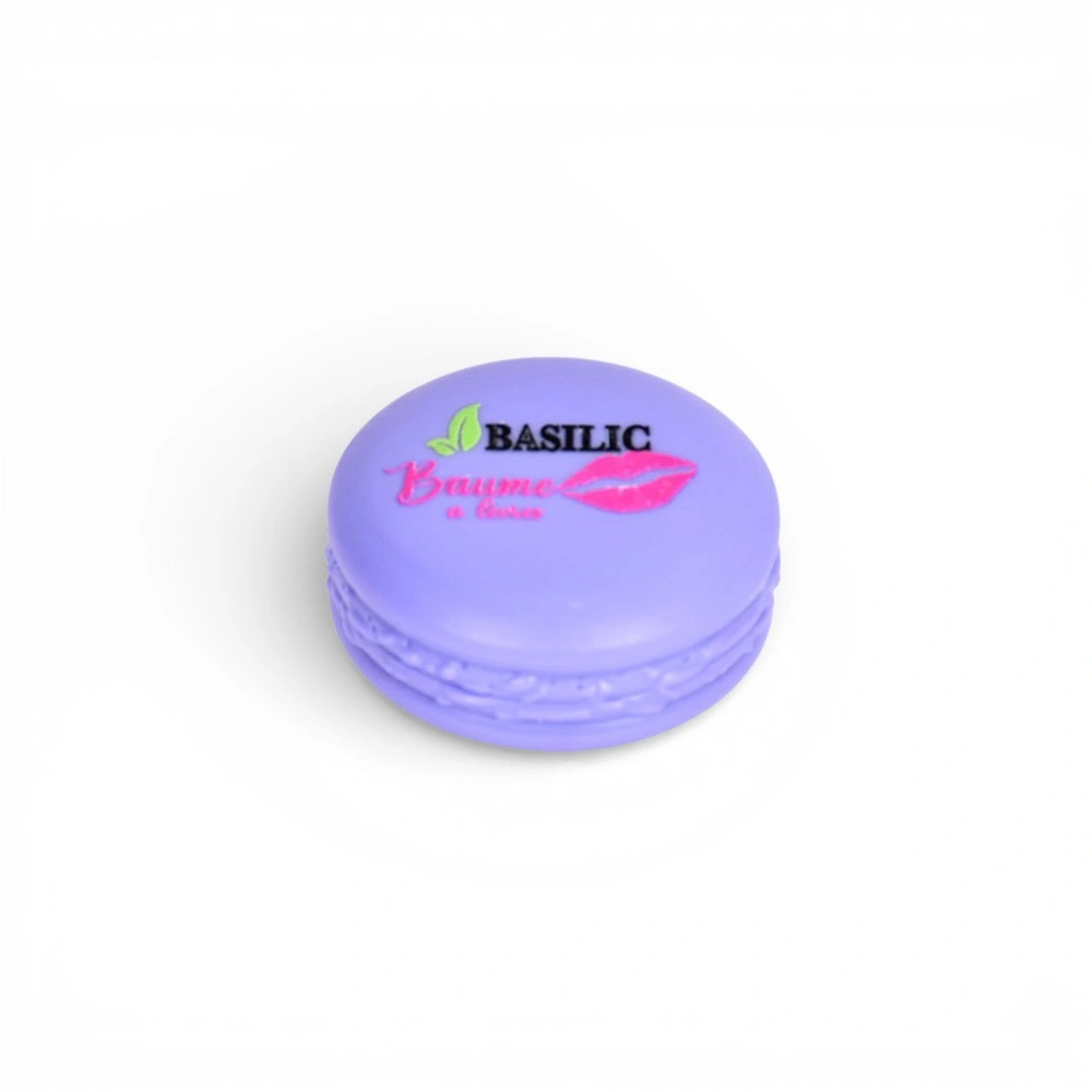 Baume à lèvres nourrissant, présenté dans un emballage ludique en forme de macaron. Hydrate, protège et parfume délicatement les lèvres.